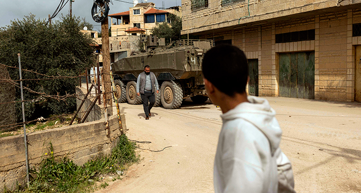 Hombre palestino observa a soldados de Israel en Cisjordania. | AFP