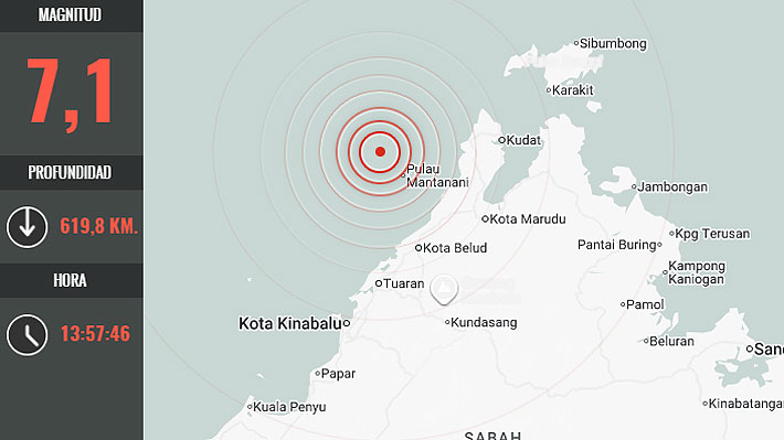 Un terremoto de magnitud 7,1 se registró en la costa de Malasia, frente al estado de Sabah, en la isla de Borneo, según reportó el Servicio Geológico de Estados Unidos (USGS por su sigla en inglés).