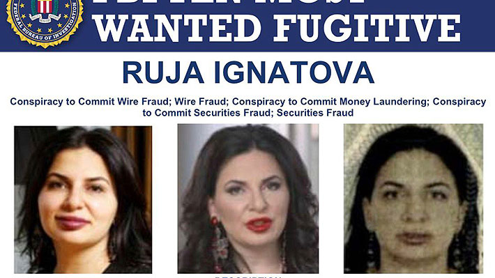 - Ruja Ignatova: única mujer en la lista de los más buscados del FBI. Conocida como la "Criptoriana Desaparecida", no se ha visto en ocho años, luego de su orden de arresto. Fue en 2014 que Ruja Ignatova fundó la criptomoneda fraudulenta "OneCoin", que hizo que los inversionistas perdieran más de 4.000 millones de dólares ($3,4 billones).