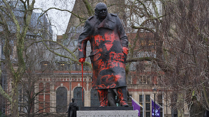 Un hombre de 38 años fue detenido en el centro de Londres tras ser sorprendido la madrugada de este viernes pintando con spray rojo la estatua de Winston Churchill, ubicada en Parliament Square frente al Parlamento británico. El monumento fue cubierto con consignas vinculadas a la causa palestina, dijeron fuentes policiales y reportes internacionales.