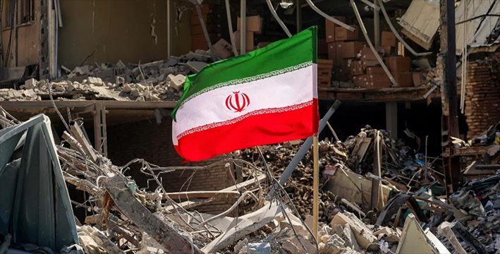 Una bandera iraní ubicada en medio de la destrucción provocada en Teherán por ataques de EE.UU. e Israel. | AFP