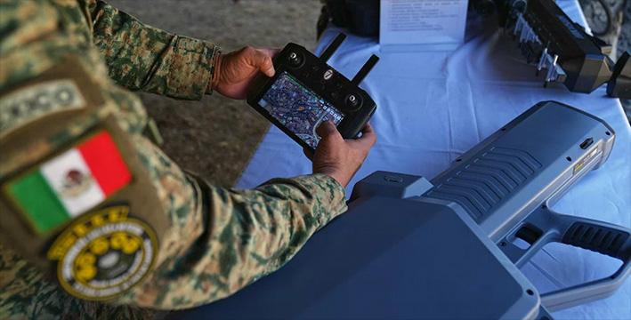 Fuerzas mexicanas muestran el equipamiento anti drones que usarán en el Mundial 2026. | AP