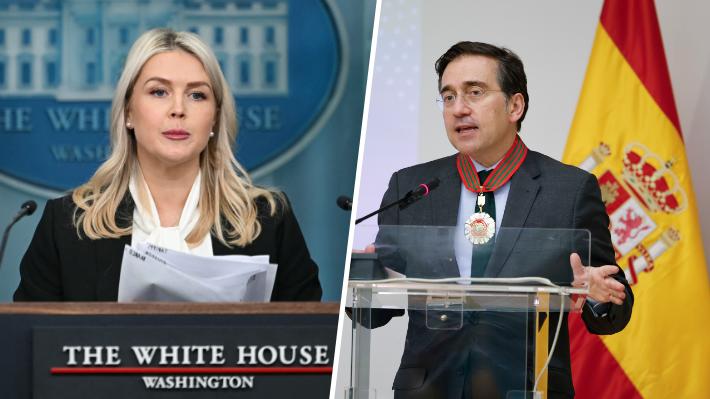 Karoline Leavitt, portavoz de la Casa Blanca y el ministro de Exteriores español, José Manuel Albares.