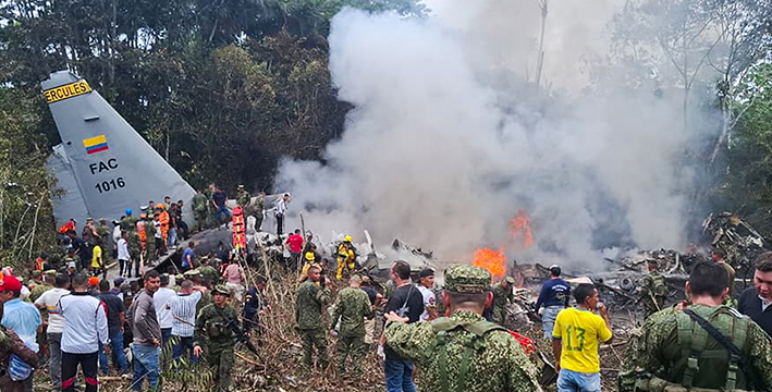 El accidente del avión Hércules C-130 de la Fuerza Aérea Colombiana (FAC) de este lunes, que llevaba 125 personas a bordo, en su mayoría militares, de las cuales al menos 66 perdieron la vida, es uno de los más importantes desde 2018 en el ámbito militar entre las tragedias aéreas ocurridas en Latinoamérica.