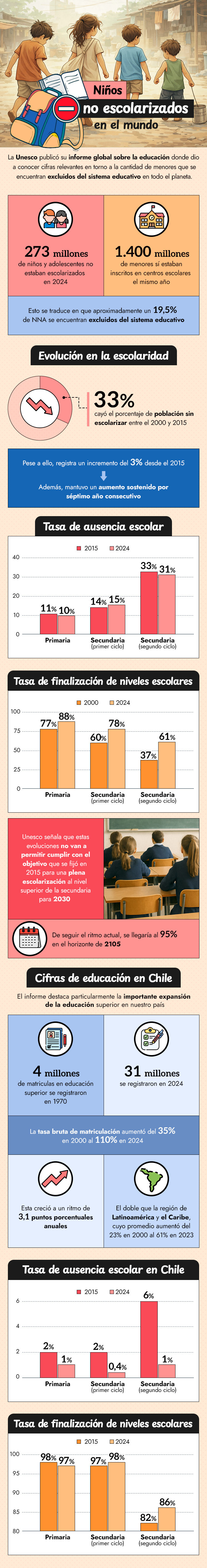 El informe de la Unesco revela avances desiguales en asistencia y finalización escolar, con un ritmo global insuficiente para cumplir las metas educativas hacia 2030.