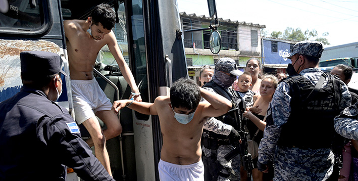 Hombres detenidos en marzo de 2022 poco después del estado de excepción. | AFP