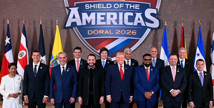 Líderes latinoamericanos junto a Trump en el "Escudo de las Américas". | AFP