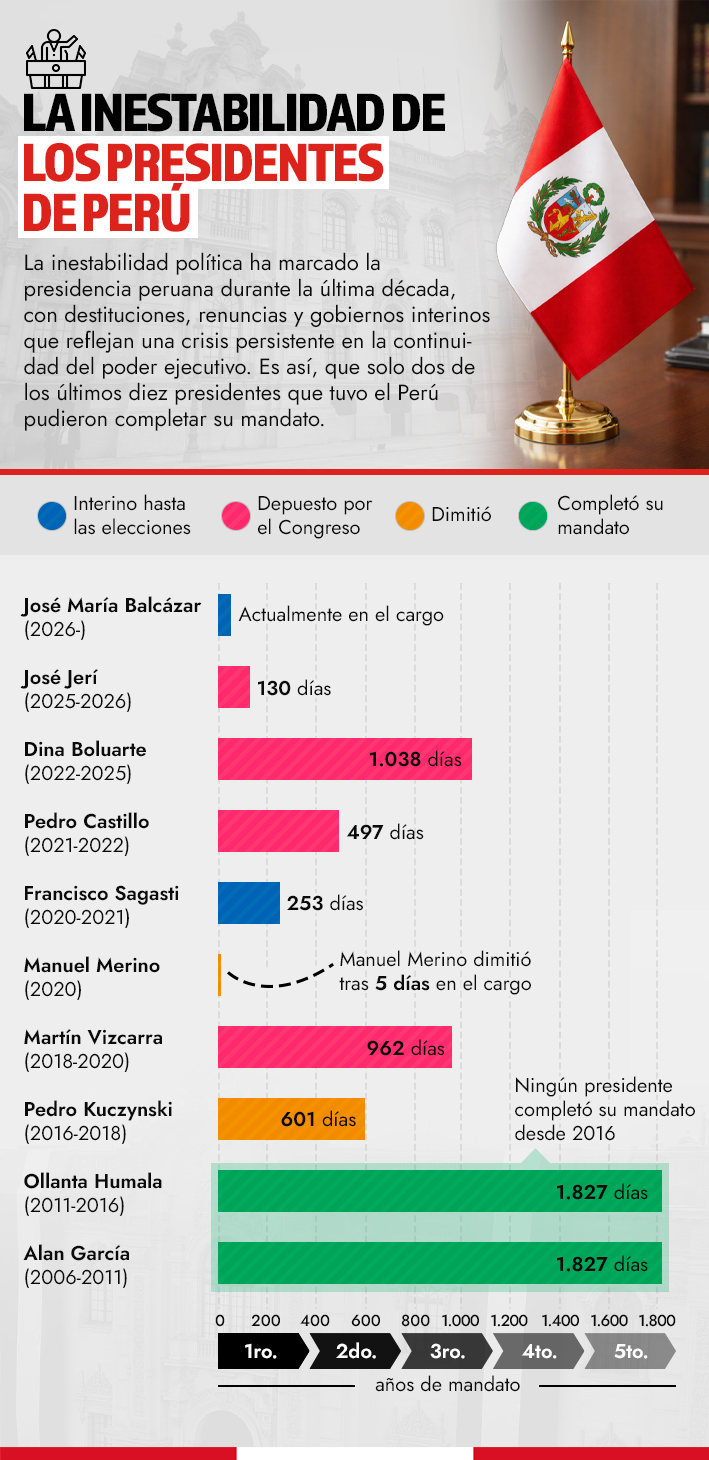 Inestabilidad en Perú: Una década de presidentes sin completar sus mandatos