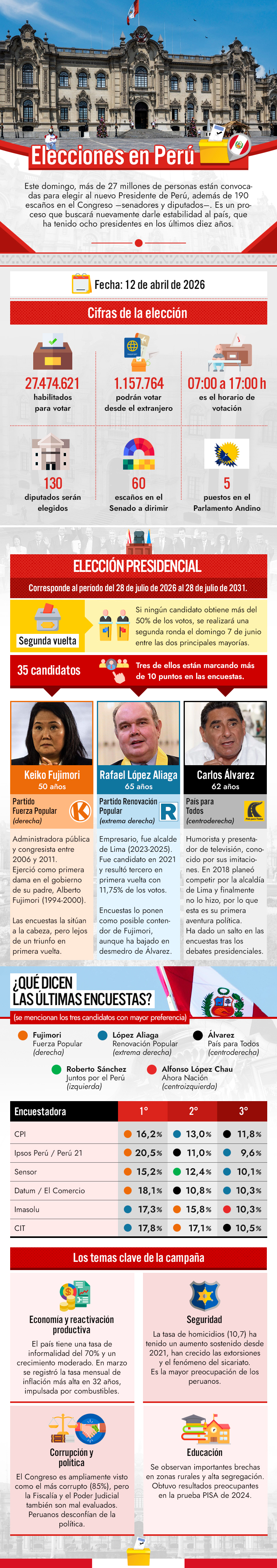Perú acude a las urnas: Las claves del proceso electoral que tiene 35 candidatos presidenciales