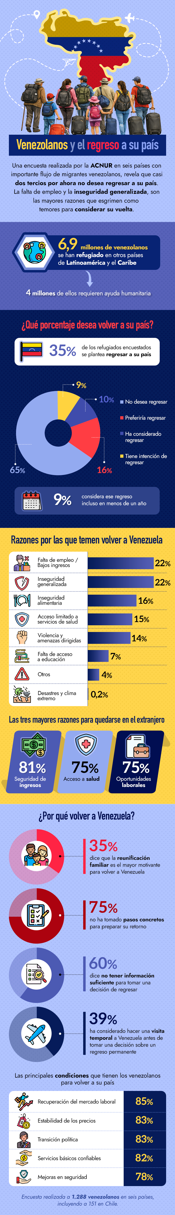 El sondeo realizado por la ACNUR en seis países –incluyendo Chile– revela que alrededor de un 9% sí tiene planes para regresar a Venezuela en menos de un año.