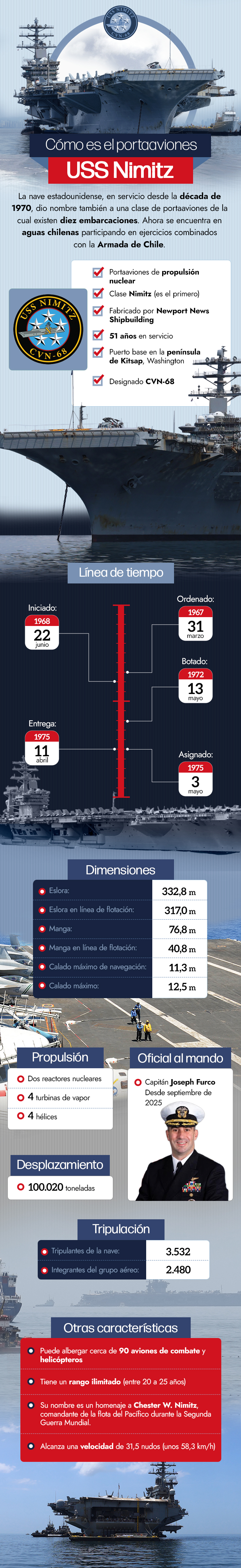Cómo es el portaaviones estadounidense USS Nimitz que se encuentra navegando en aguas chilenas