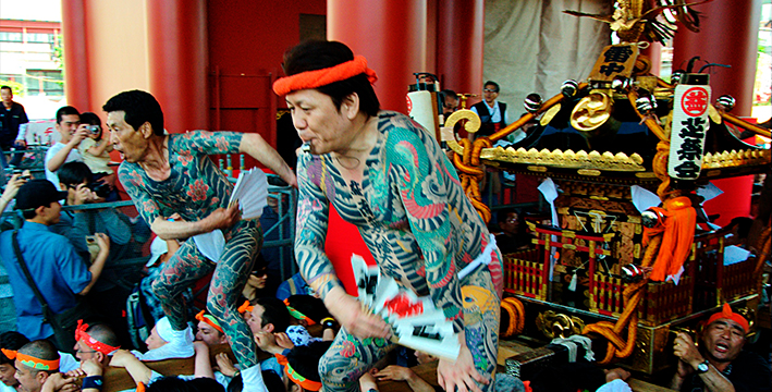 Yakuza exhiben sus tatuajes en festival Sanja Matsuri. | Wikimedia
