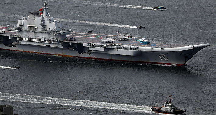 Portaviones chino junto a otras embarcaciones militares. | AP