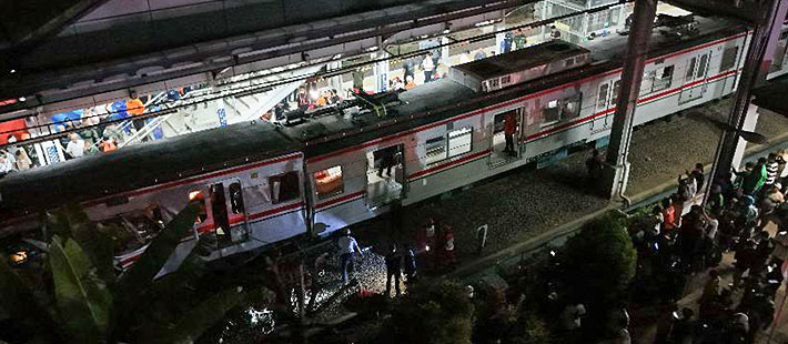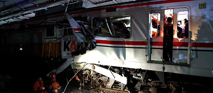 Los trenes afectados son un convoy de cercanías que procedía de Yakarta y otro de larga distancia, que colisionaron la noche del lunes en la estación de East Bekasi, a unos veinte kilómetros de Yakarta, por causas aún desconocidas, según autoridades y medios locales.