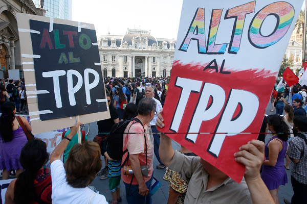 SANTIAGO.- Cientos de personas marcharon anoche por el centro de Santiago y en otras ciudades de país en contra del Tratado Transpacífico (TPP).