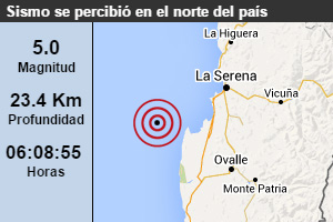 Según información preliminar entregada por Centro Sismológico de la Universidad de Chile, el temblor tuvo una magnitud 5,0 Richter y se produjo a las 06:08 horas.
