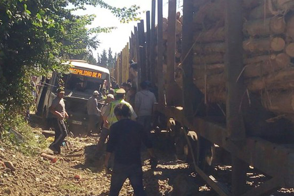 SANTIAGO.- Totalmente destruido quedó un bus que esta tarde chocó con un tren de carga de la empresa Ferrocarriles del Pacífico S.A. (Fepasa), que trasladaba madera, en la Región de La Araucanía.
