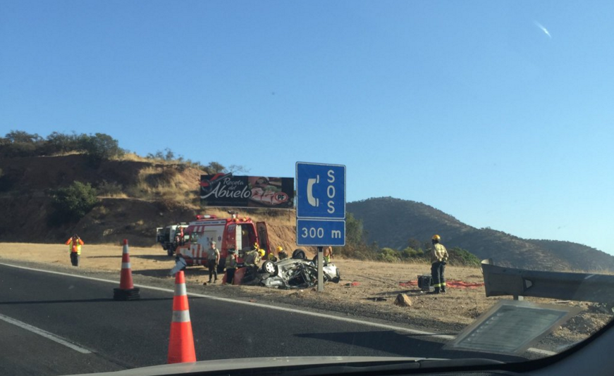 El accidente dejó dos personas fallecidas y el auto implicado está en la berma de la ruta. Autoridades recomiendan preferir alternativas para ingresar a la capital desde la Región de Valparaíso.