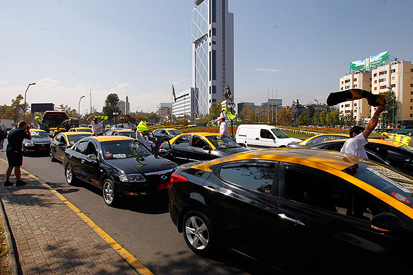 La manifestación comenzó en el centro de Santiago, donde los taxistas avanzaron por la Alameda en dirección al oriente tocando sus bocinas y reclamando por la existencia de servicios "ilegales" por, aseguran, haber una "competencia desleal".