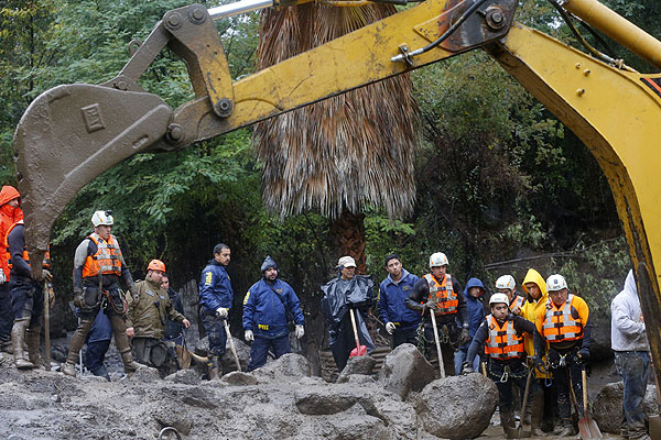 La situación más grave se vive en la cordillera capitalina, donde desde las 07:30 horas, los equipos del Grupo de Operaciones Policiales Especiales (GOPE), la PDI y voluntarios buscan a tres personas que se mantienen desaparecidas, luego de que la vivienda en que dormían fuera arrastrada por un aluvión.