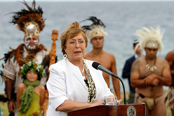 "El turismo es, con justa razón, una de las fuentes de ingreso más importantes de Isla de Pascua. Pero, como toda actividad humana, tiene un impacto en el medioambiente. Es necesario que seamos muy claros en establecer condiciones y requisitos que resguarden el patrimonio natural y cultural", señaló Bachelet.