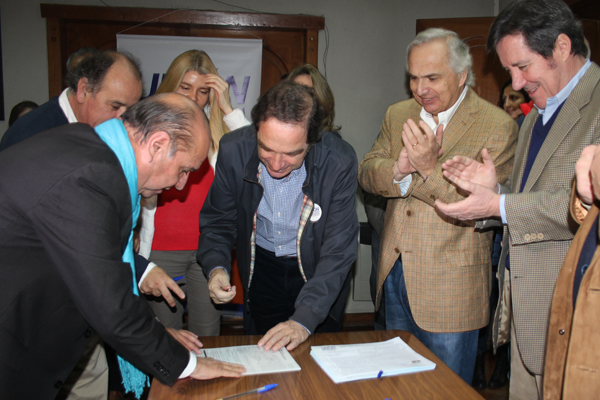 El presidente de la UDI, Hernán Larraín, el vicepresidente, Edmundo Eluchans y el ex ministro Andrés Chadwick, encabezaron la actividad.