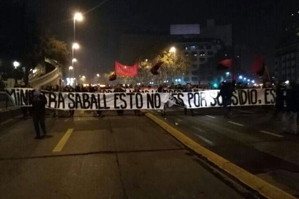 Poco antes, una protesta de pobladores del movimiento Ukamau se produjo por la Alameda a la altura de la calle Portugal, en el que exigían soluciones habitacionales.