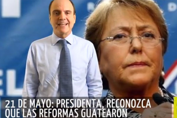 SANTIAGO.- De cara a la cuenta pública que realizará la Presidenta Michelle Bachelet, el próximo sábado 21 de mayo, RN lanzó un video en que emplazó a la Mandataria a reconocer que las reformas impulsadas por el Gobierno "guatearon" y por ende, a cambiar el rumbo de su gestión.