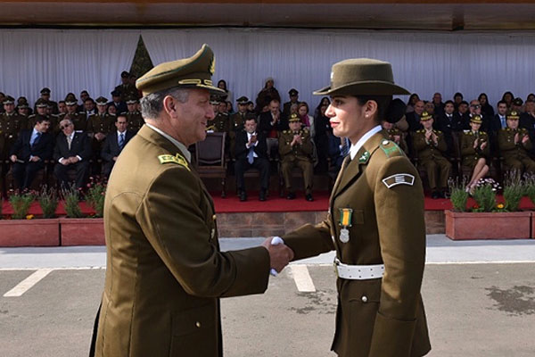 Tras su juramento de los nuevos uniformados, la institución condecoró a la alumna de Viña del Mar Francisca Gaete, quien obtuvo la “primera antigüedad” con un promedio de 6,65.