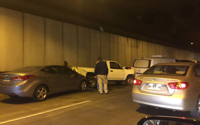 SANTIAGO.- Seis vehículos colisionaron esta mañana en la Costanera Norte, a la altura de la salida hacia Bellavista.