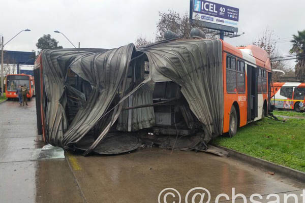 11 de julio un bus del Transantiago se partiera por la mitad en pleno acceso al túnel San Cristóbal, un accidente similar ocurrió este mediodía en Maipú.