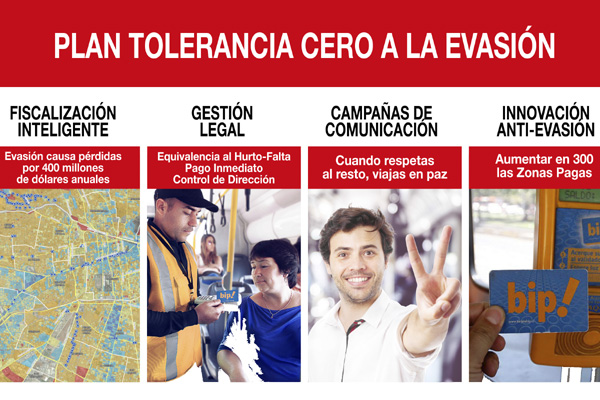 Las propuestas de la empresa, que trabaja junto a las operadoras Alsacia y Express, fueron presentadas en el lanzamiento de la sexta etapa del plan integral Tolerancia Cero a la Evasión, desarrollado desde abril de 2013 en los troncales 100, 400 y servicios de la zona D del Transantiago.