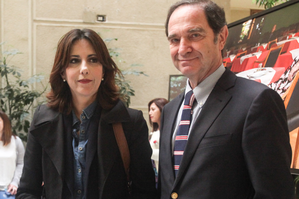 La presidenta del PRI, Alejandra Bravo, junto al líder de la UDI, Hernán Larraín.