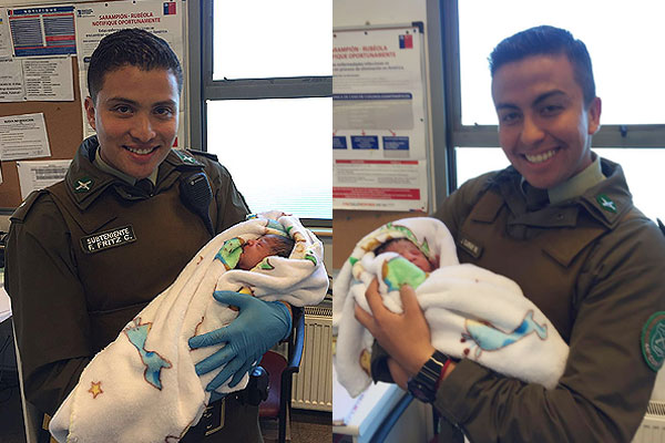 El subteniente Felipe Fritz y el cabo segundo Jorge Garay , ambos de la 44ª Comisaría de Lo Prado, atendieron el parto.