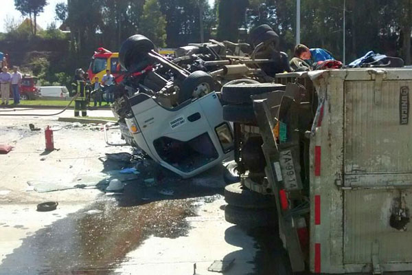Voluntarios de la Segunda, Tercera, Cuarta y Quinta compañía de Bomberos de la capital regional acudieron al lugar para ayudar a los lesionados y para controlar el derrame de petróleo proveniente de uno de los camiones.