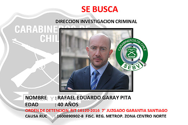 SANTIAGO.- Tras la pérdida del rastro del Rafael Garay en Bucarest, capital de Rumania, el Servicio de Impuestos Internos (SII) tomó conocimiento de los posibles delitos cometidos por el ahora prófugo de la justicia chilena, tras la orden de detención emanada en su contra.