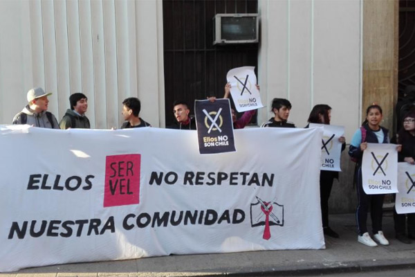 Un grupo de manifestantes ingresó hasta la oficina, ubicada en la calle Santo Domingo, en el centro de Santiago, mientras otros estudiantes se quedaron afuera con carteles y un lienzo que decía: "Ellos no respetan nuestra comunidad".