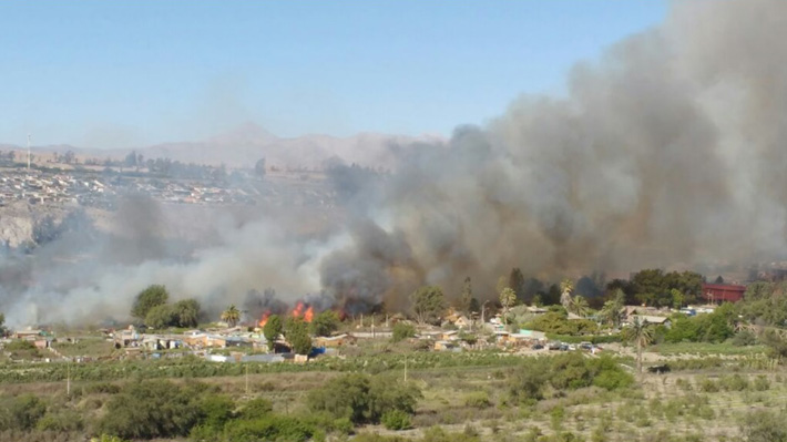 SANTIAGO.- Un gran incendio de pastizales afecta a la ciudad de Vallenar en la región de Atacama, específicamente en el sector de Chamote, alcanzando viviendas y amenazando otros sectores urbanos.