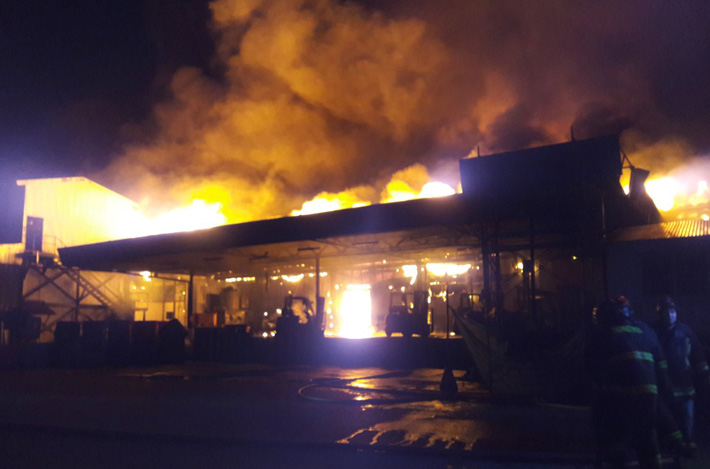 El incendio comenzó alrededor de las 00:30 horasde este lunes en la planta procesadora Friosur ubicada en Puerto Chacabuco, región de Aysén.