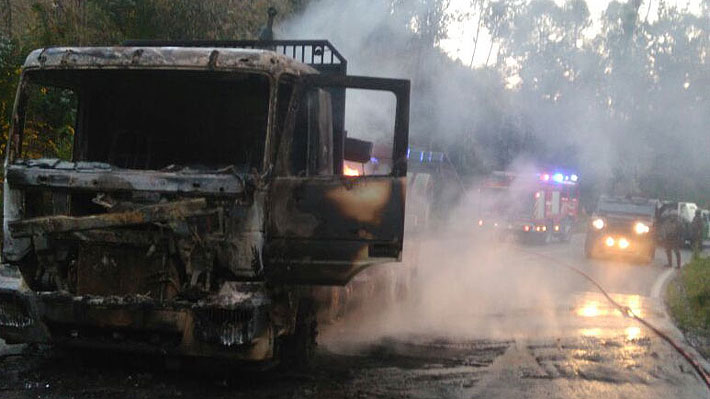 Según el relato de los afectados, al ver la ruta bloqueada por un árbol detuvieron la marcha de sus vehículos y entonces fueron abordados por unos 10 encapuchados, los que les amenazaron con armamento largo y les obligaron a descender de los camiones y alejarse del lugar. Luego de ello procedieron a quemar los vehículos de carga.