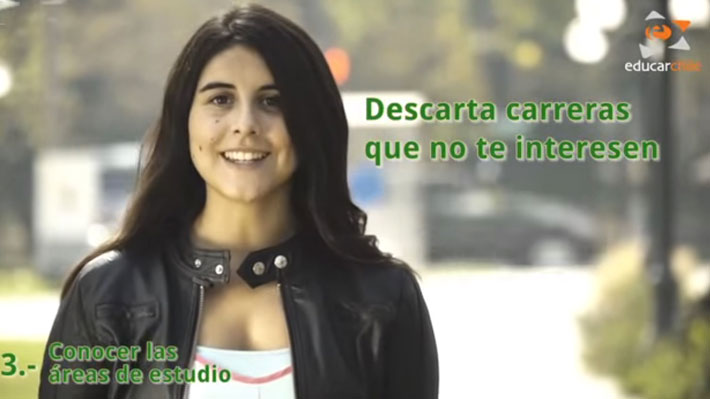 Te dejamos un video con los pasos que Educar Chile aconseja seguir para poder elegir la carrera y establecimiento educacional correcto. En el canal de YouTube educarchile, puedes revisar todos los capítulos de la serie que aborda el tema de la orientación vocacional.