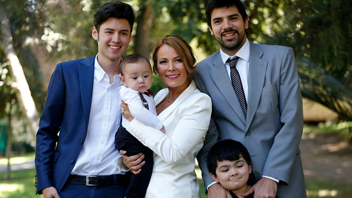 La nueva alcaldesa de Maipú junto su marido, el diputado Joaquín Lavín, y el resto de su familia.