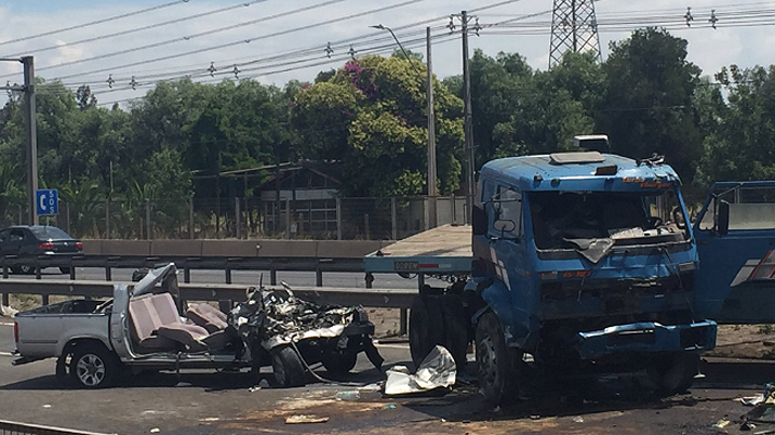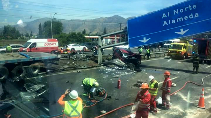 El accidente, que se produjo cerca de mediodía, involucró a un camión de carga y una camioneta. La colisión entre ambos vehículos impactó a una estructura metálica de la carretera que contenía una señalética, la cual golpeó a otros automóviles al caer.