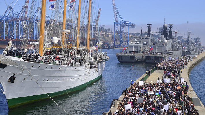 SANTIAGO.- Miles de familiares y amigos recibieron este domingo en el puerto de Valparaíso a los tripulantes del buque escuela "Esmeralda" tras 211 días de navegación.