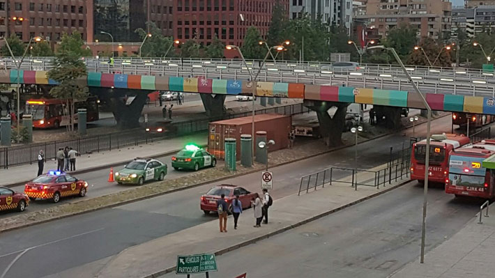 El hecho se produjo cuando el vehículo se movilizaba cargando un contenedor desde el puerto de San Antonio, por las afueras de la estación de Metro Escuela Militar, en la intersección de Américo Vespucio sur con Apoquindo.