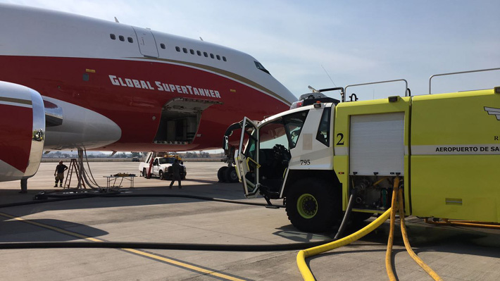 Cerca de 80 personas trabajaron en el proceso para cargar los 75 mil litros de agua, entre Bomberos, personal de Aguas Andinas y del aeropuerto.