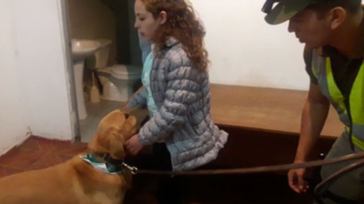 Lo anterior llevó a que los policías a la utilización del perro detector de drogas "Adolf", el que tras oler a la joven dio una alerta positiva, ante la presencia de droga, por lo que de inmediato se le solicitó su cédula de identidad.