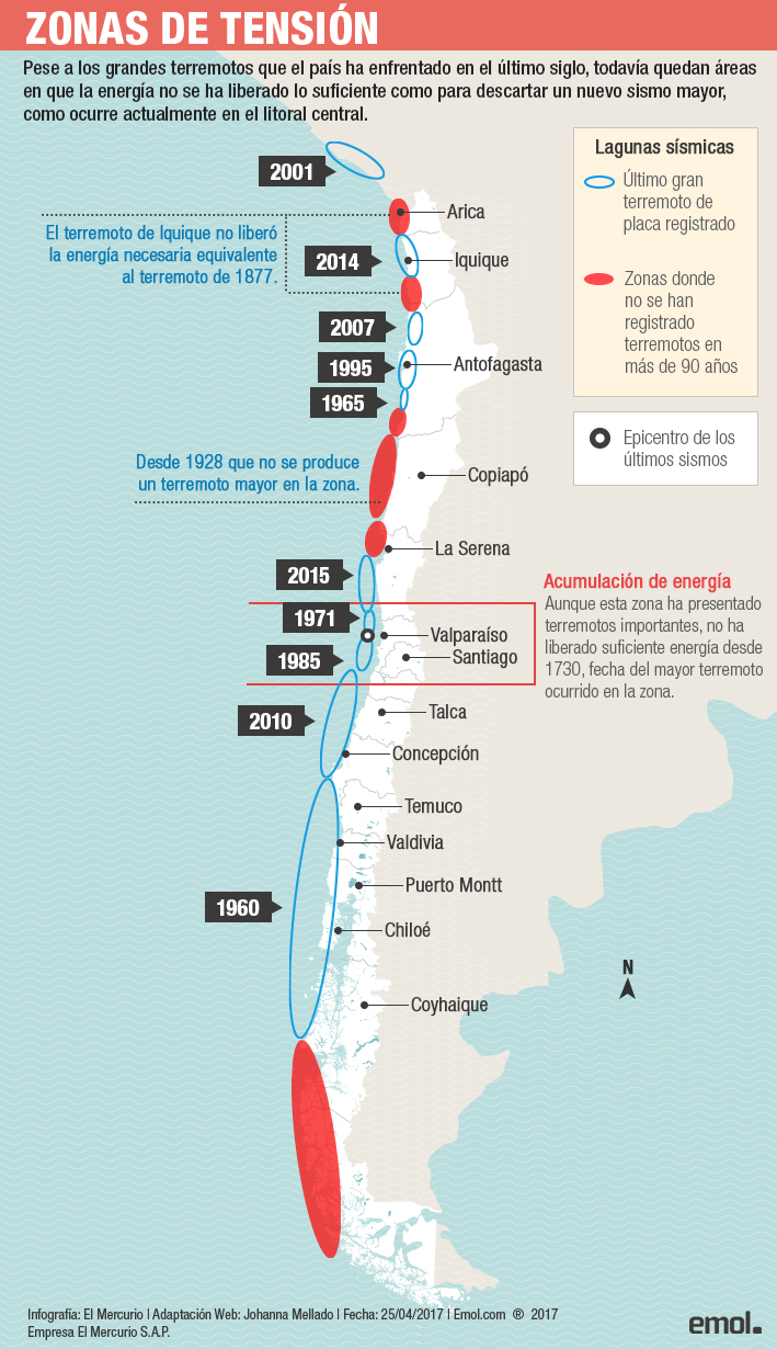 Pese a los grandes terremotos que el país ha enfrentado en el último siglo, todavía quedan áreas en que la energía no se ha liberado lo suficiente.