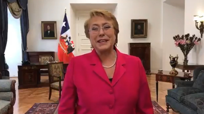 @mbachelet, donde subió un video y escribió: "En un nuevo 1 de mayo, saludo a todos los trabajadores y trabajadoras de Chile, con cuya labor nuestra Patria es cada día más grande".