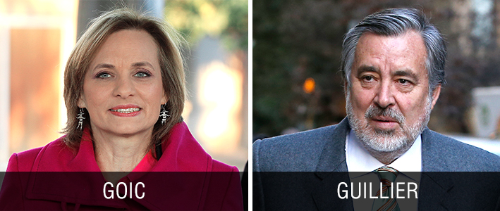 Goic, trabajadora social y representante de Magallanes en el Senado, es presidenta de la DC desde el 2016. El 19 de febrero pasado anunció su disponibilidad para ser precandidata, lo que se confirmó el sábado. Él, periodista e independiente, es senador por Antofagasta y el 7 de enero el Partido Radical lo proclamó como su candidato, mientras que el Partido Socialista optó el mes pasado por respaldarlo por sobre la opción del ex Presidente Ricardo Lagos.